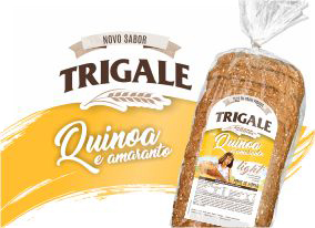 A linha Trigale composta por pães light nas versões: Aveia, Centeio, Milho, Chia, Integral, Multigrano, Castanha do Brasil, Linhaça ganhou mais um integrante: o Trigale Quinoa e Amaranto , que traz os benefícios das fibras e dos grãos.